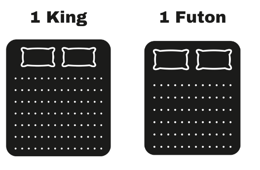 1 bedroom (king bed), 1 futon, 1.5 bathrooms